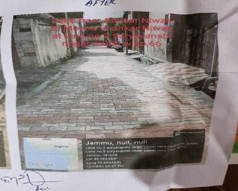 | Work Title: Up gradation of lane from H/o Sansar Niwas at MeenaShanker Niwas at lane No. 2 Suryavanshi Nagar Muthi ward no. 66 |