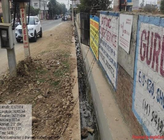 | Work Title: Construction of the drain near Stadium sector-G in ward no.69 Sainik Colony under CCDP Head for the year 21-22. |